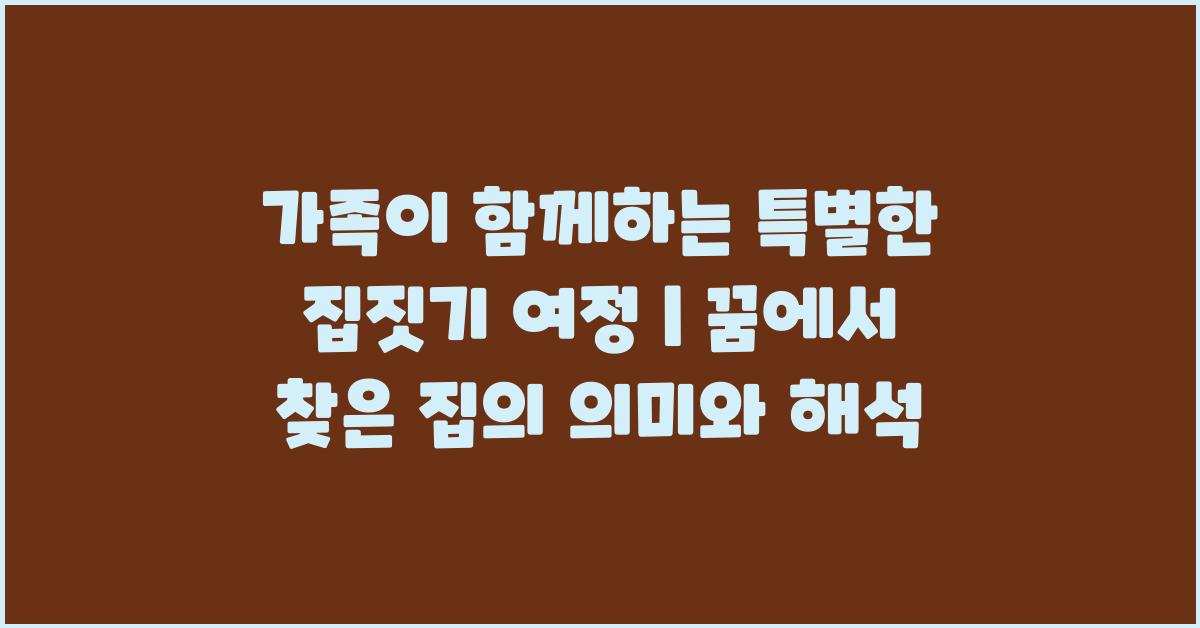 가족이 함께하는 특별한 집짓기 여정 | 꿈해몽 꿈풀이 꿈해석 꿈의미는 우리가 인생에서 겪는 가장 중요한 과정 중 하나입니다. 집은 가족의 정체성과 감정을 담고 있으며, 이를 통하여 우리는 서로 간의 소중함을 되새기게 됩니다. 꿈속의 집과 동일하게, 우리의 현실 또한 다양한 의미를 지닌 공간으로 여겨질 수 있습니다.