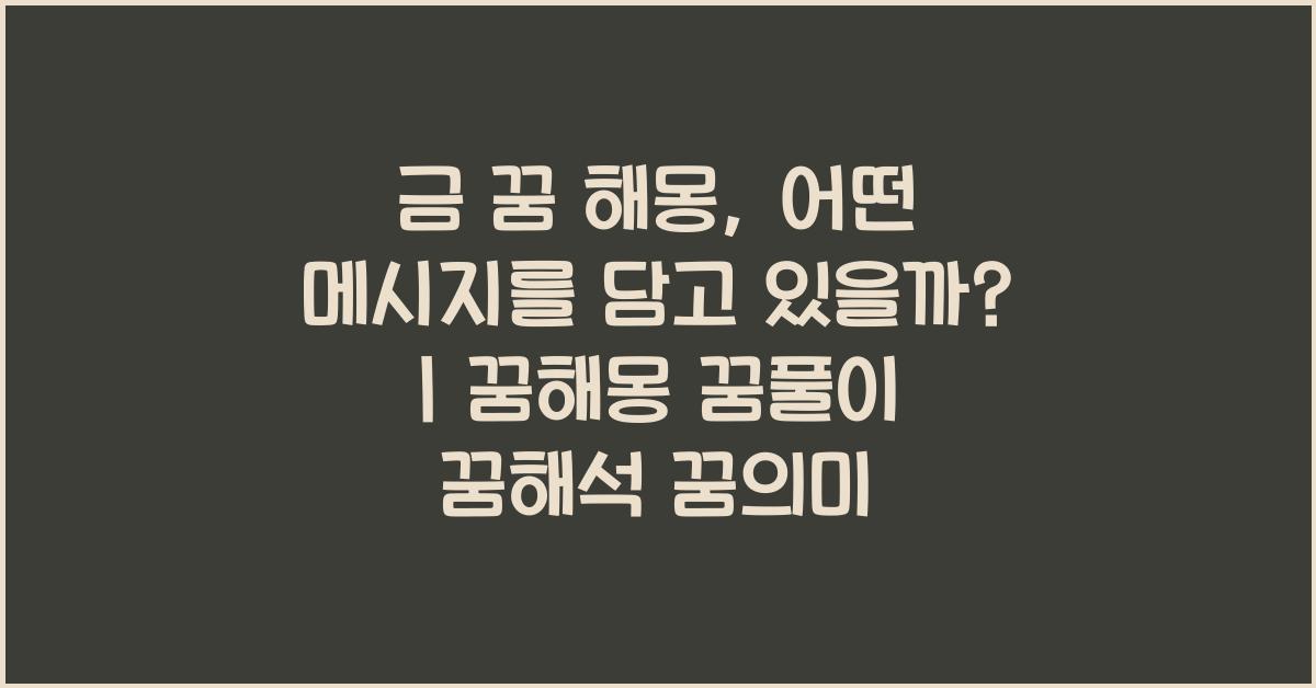금 꿈 해몽, 나에게 어떤 의미일까? | 꿈해몽 꿈풀이 꿈해석 꿈의미를 통해 우리는 자신의 내면을 탐구할 수 있습니다. 꿈속의 금은 우리의 가치, 목표, 감정 등의 상징이며, 이 모든 것을 통해 우리는 더욱 발전할 수 있는 기회를 얻습니다. 때로는 긍정적인 메시지일 수 있지만, 반대로 경각심을 일깨우는 경고가 될 수 있기도 합니다. 꿈은 우리가 인식하지 못하는 내면의 목소리를 반영하므로, 이를 소중히 여기는 것이 좋습니다.