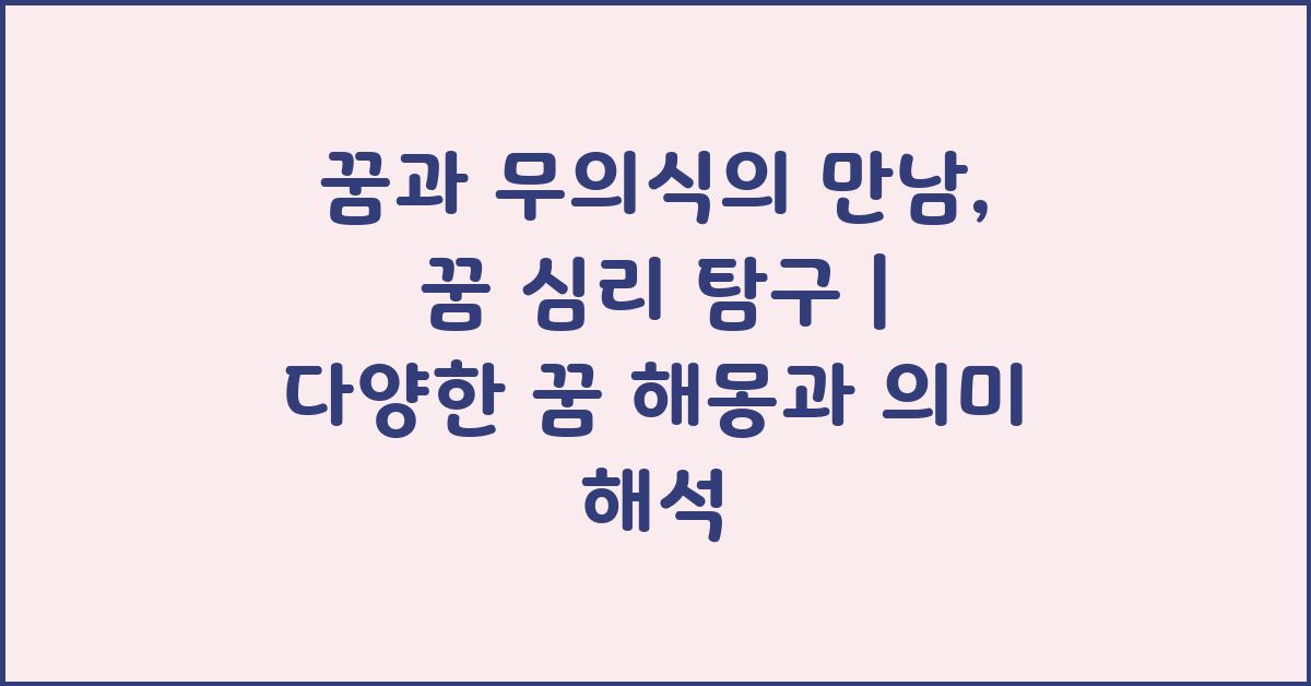 꿈은 인간의 무의식과 연결된 신비로운 세계입니다. 우리는 잠을 자는 동안 꿈을 꾸며, 이 꿈이 우리의 내면에 숨겨진 감정이나 소망을 드러내는 경우가 많습니다. 많은 심리학자들은 꿈을 통해 인간의 심리를 더 깊이 이해할 수 있다고 믿습니다. 꿈과 무의식의 만남: 꿈 심리 탐구 | 꿈해몽 꿈풀이 꿈해석 꿈의미라는 주제는 바로 이러한 심리적 요소를 통해 우리가 꿈을 해석하는 방법을 탐색할 수 있도록 돕습니다.