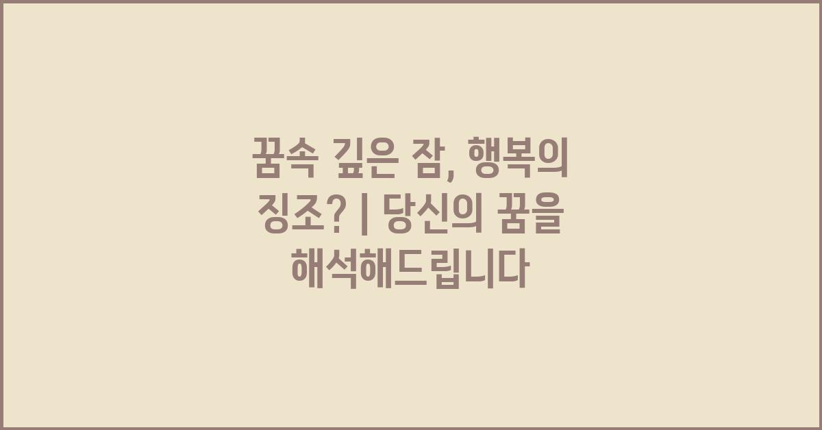 꿈속 깊은 잠, 행복의 징조? | 꿈해몽 꿈풀이 꿈해석 꿈의미는 여러분의 삶에서 더 나은 방향으로 나아가는 길잡이가 될 수 있습니다. 꿈을 통해 무의식의 메시지를 이해하고 이를 바탕으로 진정한 행복을 향해 나아가세요.