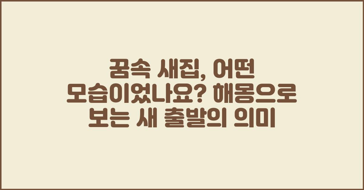 꿈속 새집, 어떤 모습이었나요? 해몽은 여러분의 삶에서 새로운 출발을 상징하는 중요한 메시지를 담고 있습니다. 꿈에서 새로운 집을 본다는 것은 많은 사람들에게 긍정적인 의미로 해석되며, 인생의 전환점이나 중요한 변화가 다가오고 있음을 알리는 신호로 여겨집니다. 이러한 꿈의 맥락을 이해한다면, 현실에서 어떻게 변화를 수용하고 긍정적인 방향으로 나아갈 수 있을지를 고민해볼 수 있습니다.