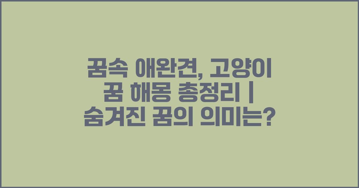 꿈속 애완견, 고양이 꿈 해몽 총정리 | 꿈해몽 꿈풀이 꿈해석 꿈의미는 여러분이 자신의 감정과 인간관계를 바라보는 새로운 시각을 제공해줍니다. 서로 다른 동물들은 서로 다른 메시지를 전달하지만, 가장 중요한 것은 여러분이 그 꿈에서 무엇을 느꼈는지, 어떤 교훈을 얻었는지입니다. 잊지 마세요! 감정의 흐름을 통해 자신을 발견하는 과정이 매우 중요하니까요.