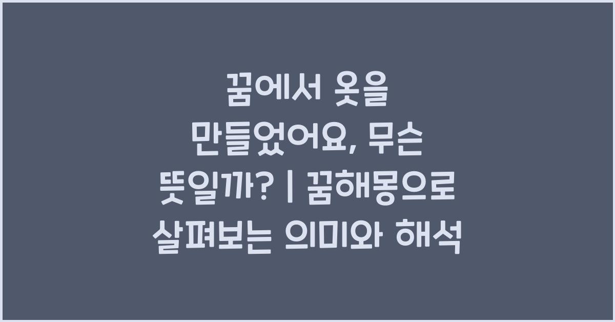 꿈에서 옷을 만들었다는 것은 매우 흥미롭고 개인적인 경험을 담고 있는 상징입니다. 꿈은 우리 마음의 다양한 감정과 생각을 반영하는 거울과 같은 역할을 하곤 합니다. 그래서 '꿈에서 옷을 만들었어요, 무슨 뜻일까?'에 대한 해석은 단순히 옷이란 물건에서 그치는 것이 아니라 꿈 꾼 사람의 내면적인 상태를 살펴보는 데 큰 의미가 있어요. 여러분은 혹시 꿈속에서 자신이 하고 싶은 일을 한 경험이 있었나요? 꿈에서 무엇이든 자유롭게 창조하는 기분이 얼마나 특별한지 잘 이해하실 겁니다.