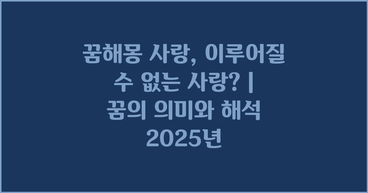 🔍 꿈해몽 사랑: 이루어질 수 없는 사랑의 의미