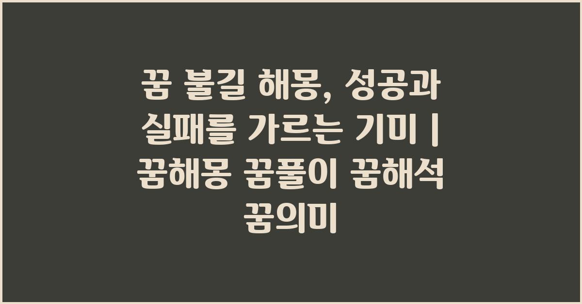 꿈 불길 해몽: 성공과 실패의 갈림길은 복잡하지만 흥미로운 과정입니다. 꿈이 주는 메시지를 주의 깊게 해석하여 의미를 찾는다면 우리의 삶에 큰 도움이 될 수 있습니다. 꿈은 과거를 돌아보게 하는 동시에, 미래를 만들어가는 지표로 작용하니까요. 여러분은 어떤 꿈을 대면했을 때, 그 의미를 찾아보셨나요? 꿈의 세계에서 발견하는 것들이 실제 삶에 영향을 미치기를 바랍니다.