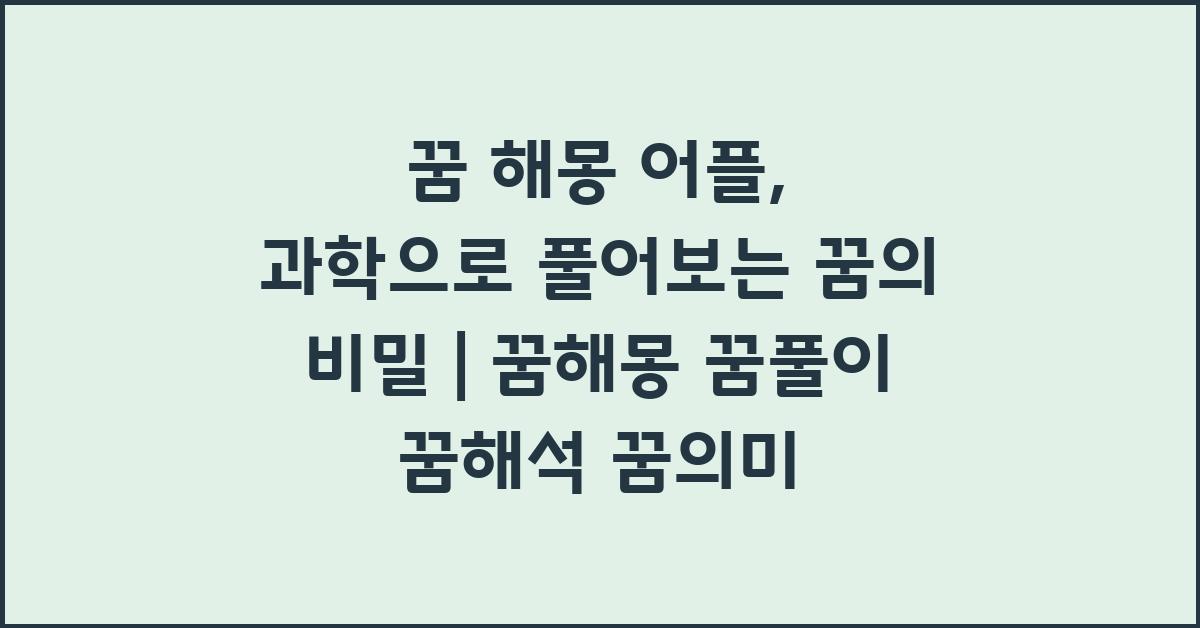 꿈 해몽 어플: 과학적인 꿈 해석의 세계로 | 꿈해몽 꿈풀이 꿈해석 꿈의미를 통해 여러분의 꿈에 대한 이야기를 시작해 보세요. 당신의 꿈 속에는 더 많은 신비와 의미가 숨어 있습니다!