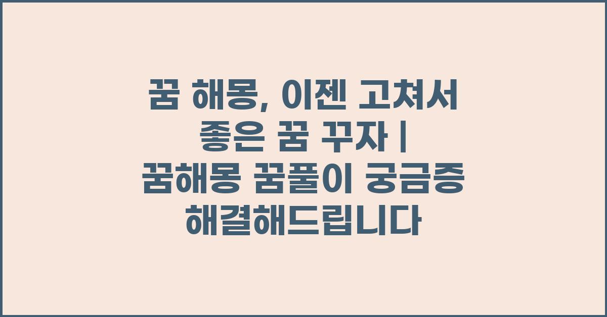 꿈의 의미를 해석하기 위해서는 먼저 꿈을 기록하고 그 속에서 느낀 감정, 상징 등을 분석해보세요. 꿈 해몽, 이젠 고쳐서 좋은 꿈 꾸자! | 꿈해몽 꿈풀이 꿈해석 꿈의미의 단서를 통해 자신에게 맞는 해석을 찾아가는 것이 중요합니다.