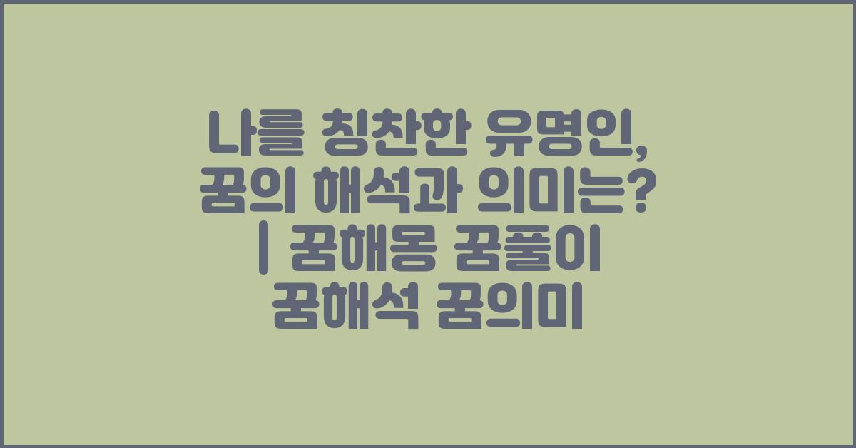 꿈은 우리 뇌가 낮에 경험한 것들을 재구성하고, 무의식적인 생각과 감정을 표출하는 과정입니다. 특히 나를 칭찬한 유명인이 등장하는 꿈은 평소에 느끼고 있던 불안감이나 자아 이미지와 깊은 관계가 있을 가능성이 있습니다. 이런 꿈에서는 대개 긍정적인 메시지가 담겨 있다고 여겨지며, 그 유명인의 인물상이나 이미지가 어떻게 내 감정에 영향을 미치는 것도 중요합니다.