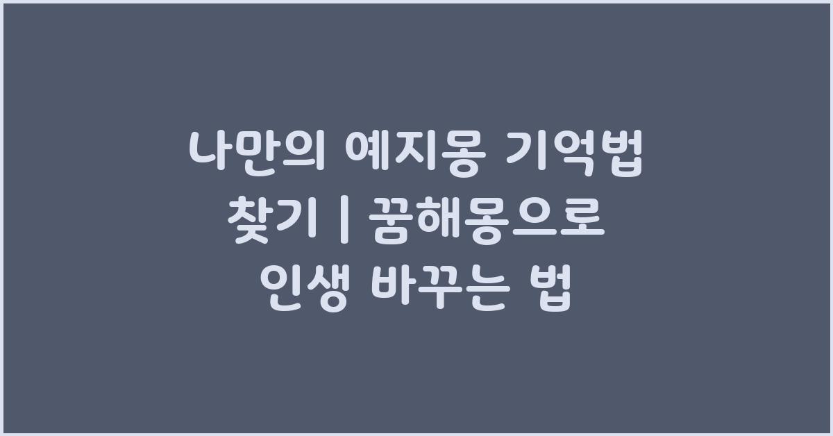 💡 나만의 예지몽 기억법을 활용한 실천 방법