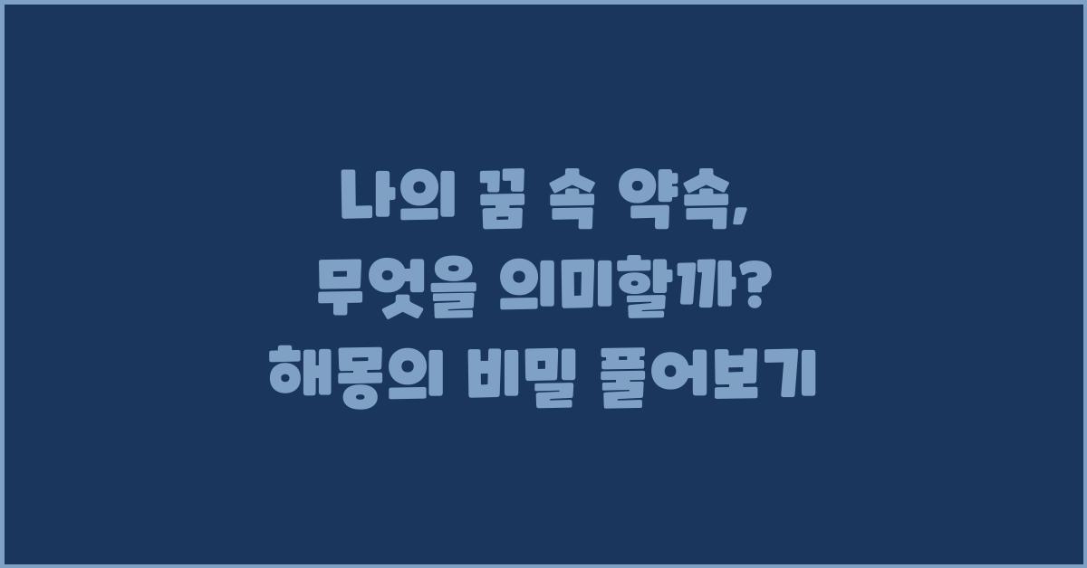 매일 밤 깊은 잠에 빠지는 순간, 우리는 또 다른 현실을 경험하게 됩니다. 삭막한 일상에서 벗어나 꿈 속에서는 무엇이든 가능 h니다. 꿈의 내용은 다양하고 때로는 의미심장한 약속처럼 다가오기도 합니다. 오늘은 '나의 꿈 속 약속, 무엇을 의미할까? | 꿈해몽 꿈풀이 꿈해석 꿈의미'에 대해 이야기해 보려 합니다. 특히 꿈 속에서 약속이란 도대체 어떤 의미를 가질까요? 우리가 꿈에서 보는 약속은 우리 내면의 세상을 비추는 거울과 같다고 할 수 있습니다.