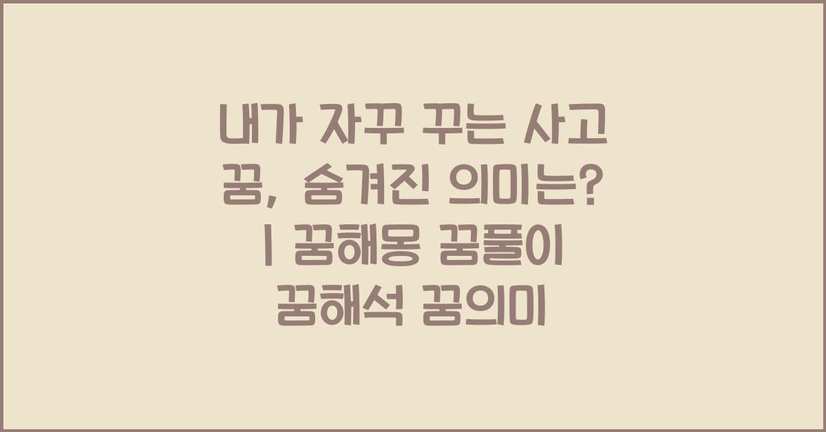 꿈은 우리의 무의식을 반영하는 신비로운 세계입니다. 특히 "내가 자꾸 꾸는 사고 꿈, 숨겨진 의미는?"이라는 질문은 많은 사람들에게 공통적인 고민입니다. 사고 꿈을 반복적으로 꾸는 것은 단순히 밤에 경험하는 환상일 뿐만 아니라, 우리의 감정과 상태를 들여다보는 중요한 단서가 될 수 있습니다. 사고 꿈의 배경에는 종종 불안, 스트레스, 또는 해결하지 못한 문제들이 숨어 있습니다.