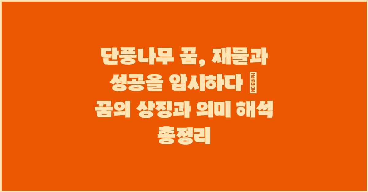 단풍나무 꿈, 재물과 성공을 암시하다 | 꿈해몽 꿈풀이 꿈해석 꿈의미에 대한 해석은 사실 매우 유연합니다. 각 사람의 경험에 따라 달라지기 때문에, 자신의 상황에 비춰보는 것이 중요합니다. 꿈 속에서의 감정이나 느낌도 중요한 힌트를 제공합니다.