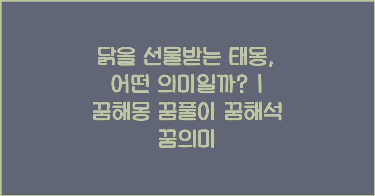 여러분, 꿈속에서 닭을 선물받는 장면을 상상해보신 적이 있나요? 많은 사람들에게 꿈은 단순한 수면의 연장이 아니라, 내 subconscious가 보내는 메시지로 해석되곤 합니다. 특히 '닭을 선물받는 태몽'은 매우 특별한 의미를 가집니다. 닭은 풍요로움, 재물, 그리고 태어날 아이에 대한 축복을 상징하곤 합니다. 그래서 이 꿈은 대체로 귀한 아기의 탄생을 예고한다고 여겨집니다. 꿈속에서 닭을 받은 기억이 나시나요? 그런 황금빛 순간들이 마치 다른 세상에 잠깐이라도 접속한 듯한 기분을 주곤 하죠.
