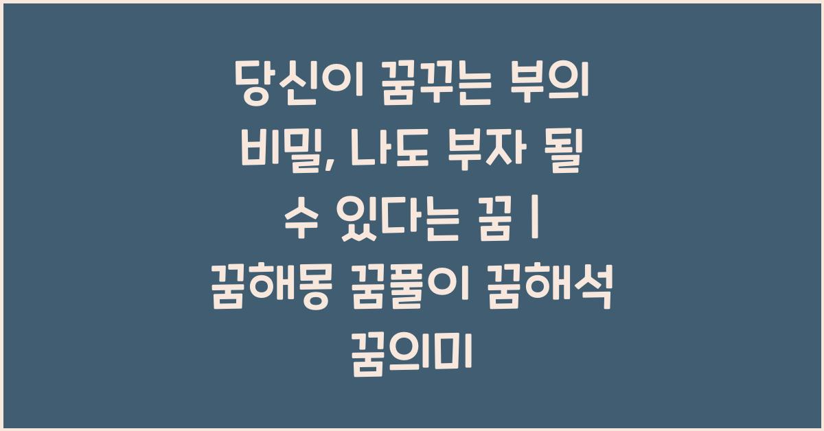 📌 나도 부자 될 수 있다는 꿈의 의미