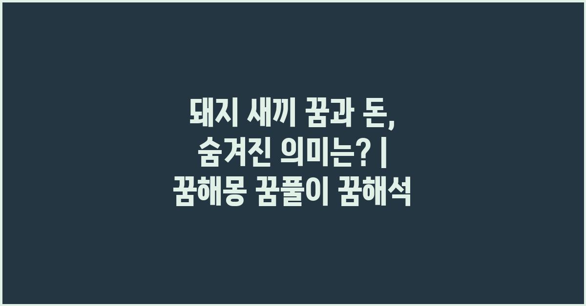 🌟 돼지 새끼 꿈과 돈, 어떤 관계일까요?