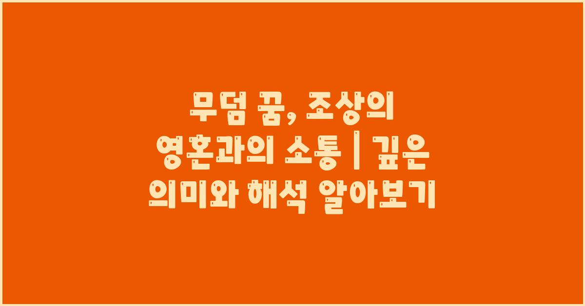 무덤 꿈, 조상의 영혼과의 소통 | 꿈해몽 꿈풀이 꿈해석 꿈의미는 다시 돌아보고 성장하는 기회를 제공합니다. 요즘에는 꿈을 통해 나 자신을 재조명하는 동시에 조상들의 지혜와 경험을 배울 수 있는 방법을 찾아야 합니다. 나의 경험 중에, 한 번 꿈속의 조상과 대화하며 느낀 감정이 아직도 잊히지 않는데, 이는 삶에서 중요한 조언이 되었습니다.