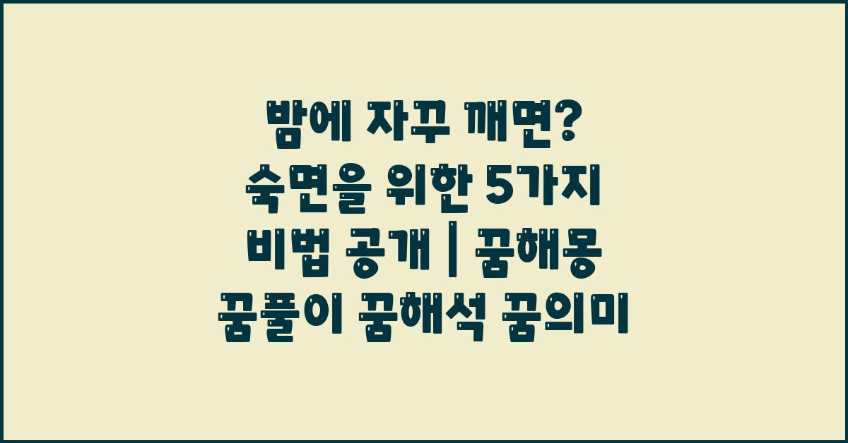 잠에서 자주 깨는 이유가 꿈과 관련있을 수 있음을 아시나요? 꿈은 우리의 무의식을 반영한다고도 하죠. 잠자기 전에 오늘의 생각이나 감정을 꿈 해몽을 통해 이해하는 것이 좋은 방법이 될 수 있습니다. 개인적으로 꿈 해몽을 통해 내 마음 깊은 곳의 감정을 안 날이 많았어요. 이런 과정이 여러분에게도 도움이 된다면 좋겠네요!