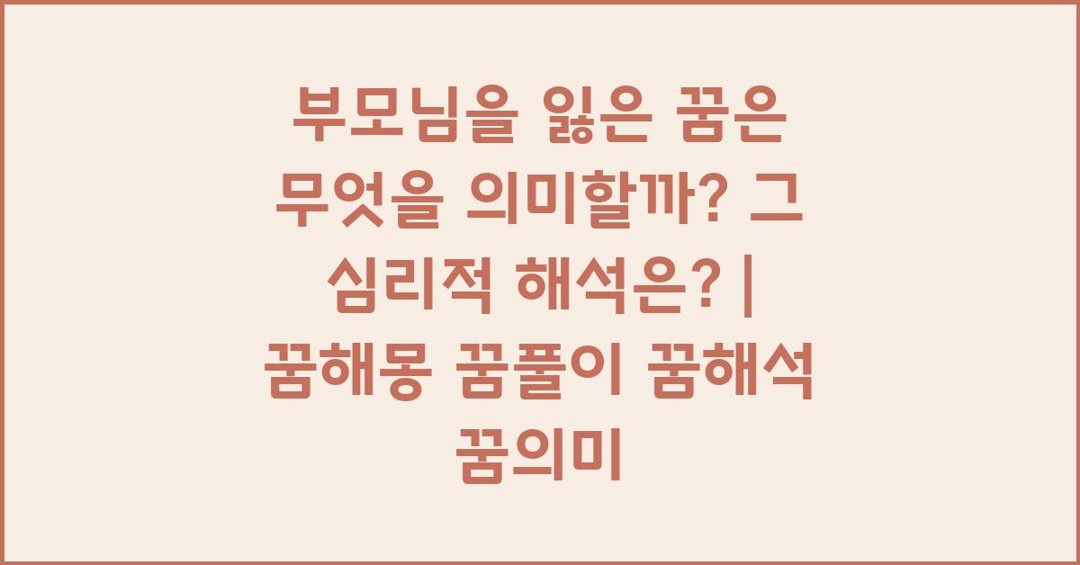 부모님을 잃은 꿈은 무엇을 의미할까? | 꿈해몽 꿈풀이 꿈해석 꿈의미