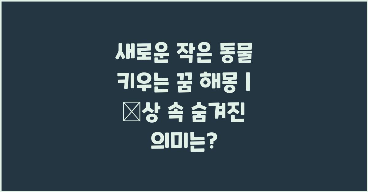 🌟 새로운 작은 동물 키우는 꿈 해몽이란?