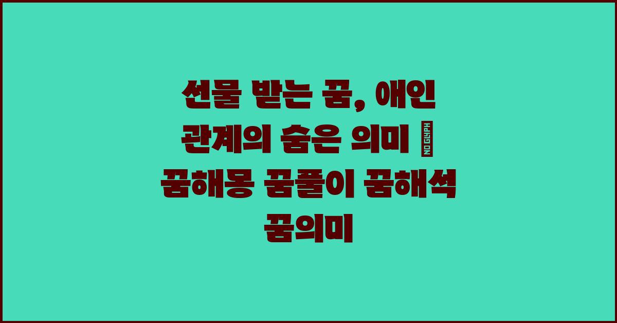 선물 받는 꿈, 애인과의 관계는? | 꿈해몽 꿈풀이 꿈해석 꿈의미 에서 강조하는 점은, 꿈은 자신의 감정을 표현하는 세상이자, 애인과의 관계를 진단하는 기회가 될 수 있다는 것입니다.