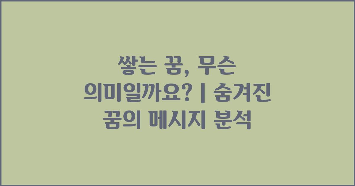 쌓는 꿈, 무슨 의미일까요? 이 질문은 결국 우리의 내면을 들여다보는 중요한 창이 될 수 있어요. 꿈은 우리의 감정과 정신 상태를 반영하는 거울이니까요. 꿈 속의 메시지를 통해 자신을 좀 더 이해하고, 더 나은 방향으로 나아갈 수 있는 기회를 잡으세요. 오늘 밤 당신의 꿈 속에서 무슨 일이 벌어질지, 기대가 됩니다!