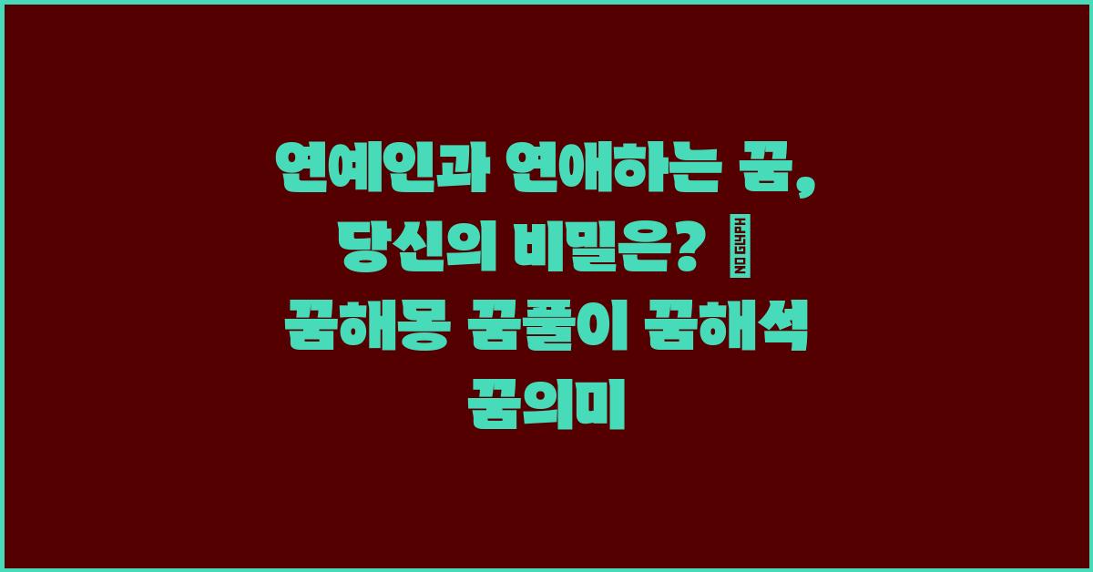 연예인과의 꿈은 그 자체로 흥미로운 주제이지만, 왜 우리가 특히 이런 꿈을 꿀까요? 연예인과 연애하는 꿈 | 꿈해몽 꿈풀이 꿈해석 꿈의미는 종종 우리가 소중히 여기는 사랑이나 관계에 대한 갈망을 반영하기도 합니다. 즉, 현실에서 느끼는 고독감이나 사랑받고 싶은 마음이 꿈에 나타나는 것이죠. 꿈을 해석할 때 가장 중요한 것은 그 꿈이 꾼 사람의 현재 상태와 감정입니다. 그렇게 보면, 여러분의 꿈 속 연애는 어떤 감정을 전달하고 싶어 하는 걸까요?