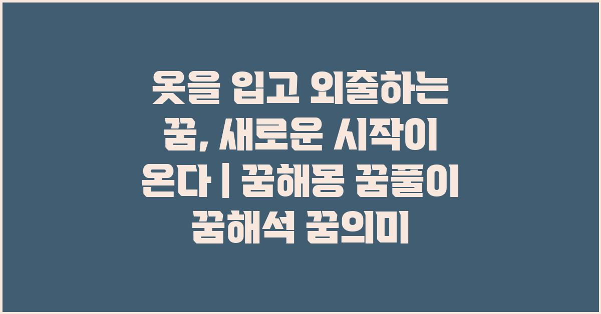 이처럼 꿈의 해석은 다양한 관점에서 이해될 수 있습니다. '옷을 입고 외출하는 꿈, 새로운 시작을 알리다 | 꿈해몽 꿈풀이 꿈해석 꿈의미'는 그 자체로 여러 가지 해석의 가능성을 열어주죠. 예를 들어, 일상의 반복을 벗어날 수 있는 기회가 우리에게 다가오고 있다는 경고일 수도 있습니다.