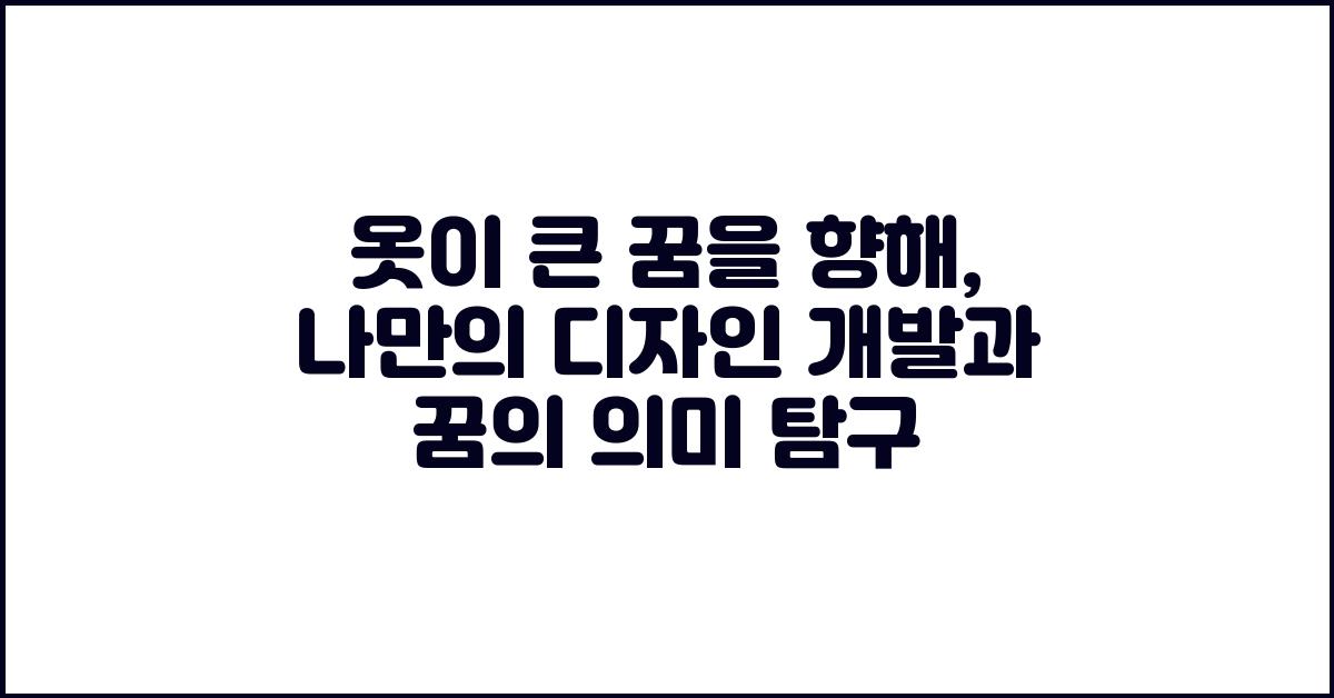 옷이 큰 꿈을 향해 나만의 디자인 개발을 시작하며, 나는 나만의 스타일을 찾기 위한 여정을 떠났다. 처음에는 막연한 꿈이었지만, 시간이 지나면서 그 꿈이 구체화되는 과정을 통해 진정한 나의 모습을 발견하게 되었다. 디자인은 단순한 직물의 조합이 아니다. 그 안에는 나의 생각과 감정이 배어있다. 그래서 나는 옷으로 나의 이야기를 전하고 싶다. 여러분도 이런 경험 있으신가요?