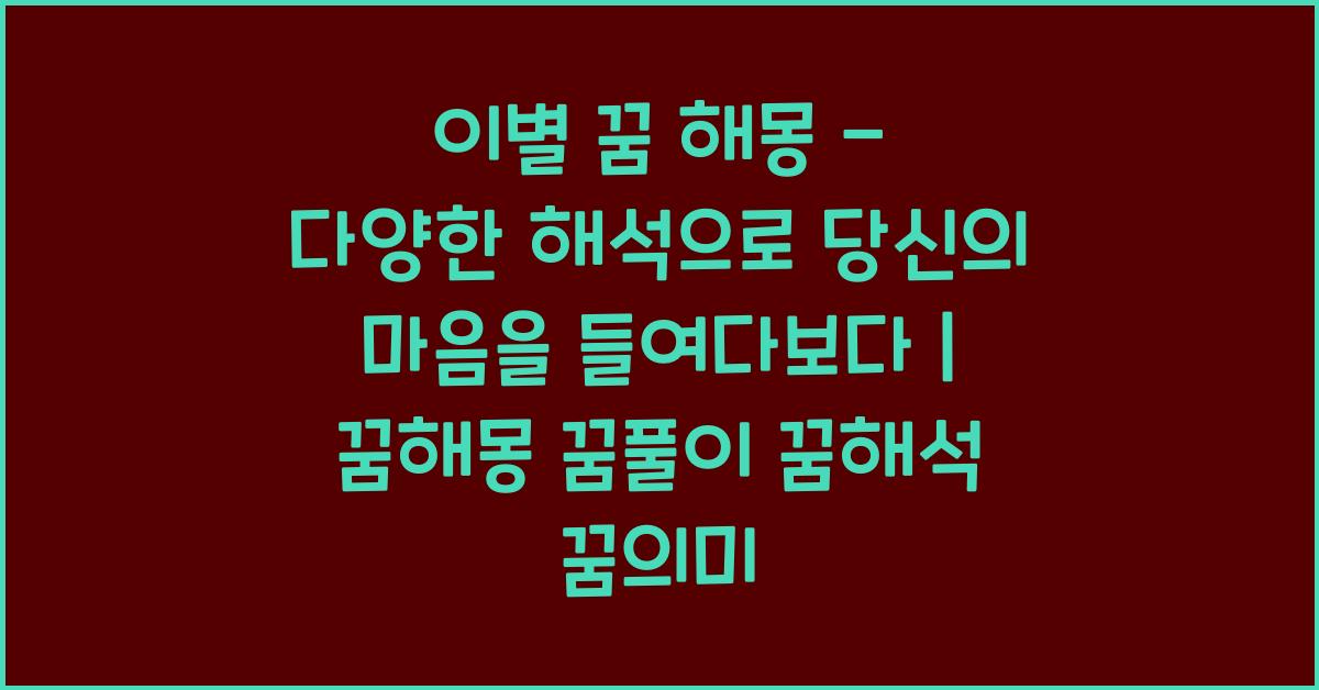 결국, 이별 꿈 해몽은 당신의 마음을 들여다보는 중요한 창구입니다. 이런 깊은 통찰을 통해 스스로를 이해하고, 더 나은 방향으로 나아갈 수 있는 계기가 되길 바랍니다!