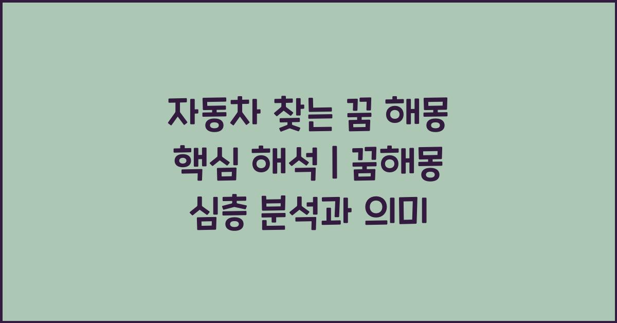 자동차를 찾는 꿈이 가진 의미와 그 해석을 알아보며, 꿈의 깊은 의미를 탐구해보세요. 이 글에서는 꿈 해석과 해몽에 대한 심층적인 분석을 제공합니다.