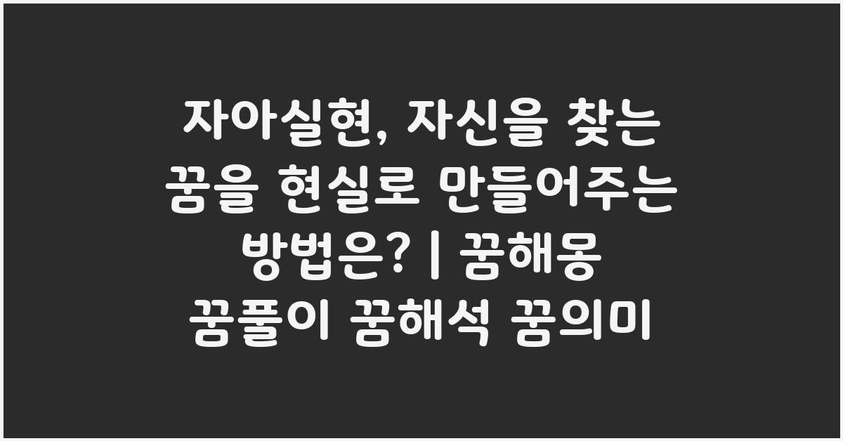 자아실현은 단순한 꿈이 아닙니다. 지속적인 노력과 성찰을 통해 한 발짝씩 다가갈 수 있는 현실입니다. 자아실현, 자신을 찾는 꿈을 현실로 | 꿈해몽 꿈풀이 꿈해석 꿈의미라는 주제를 통해 삶의 본질에 대한 고민을 나누었습니다.