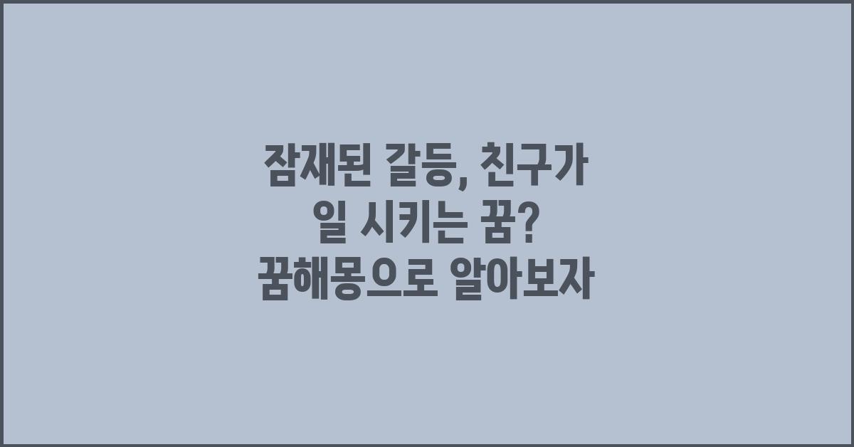 잠재된 갈등은 종종 우리가 일상에서 겪는 문제와 연관이 있습니다. 예를 들어, 주변 친구들이 묵묵히 일을 떠안고 지내는 모습을 보면서 '나도 왜 그런가?' 싶었었습니다. 이처럼 꿈에 나타나는 친구의 모습은 현실에서의 관계에서의 불편함을 드러내기도 합니다. 여러분도 비슷한 마음을 가지고 계신가요?