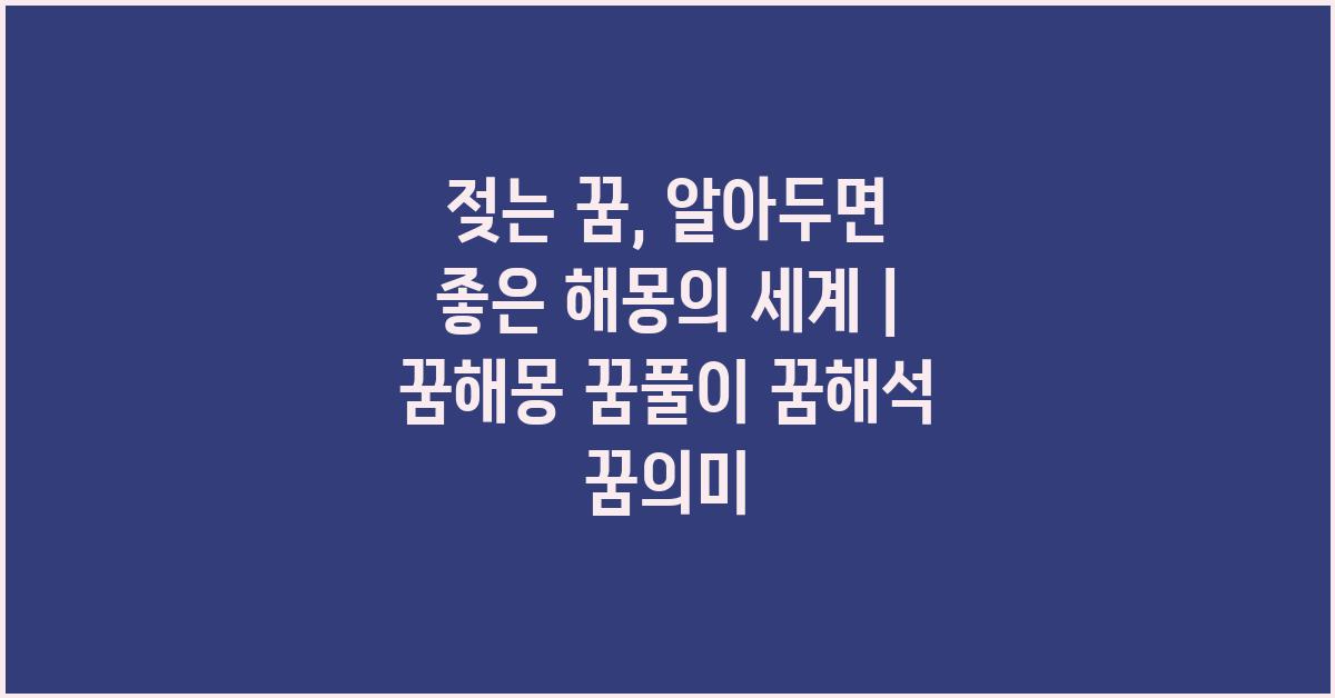 꿈은 우리가 잠들었을 때 무의식에서 몸부림치는 생각과 감정의 집합체입니다. 특히 젖는 꿈은 사람들 사이에서 흔히 겪는 꿈 중 하나입니다. 여러분은 밤에 어떤 꿈을 꾸셨나요? 꿈을 해석하는 것은 우리의 삶에서 중요한 의미를 가집니다. 젖는 꿈, 놓치지 마세요! 해몽의 세계 | 꿈해몽 꿈풀이 꿈해석 꿈의미를 통해 여러분의 꿈을 분석해보세요.