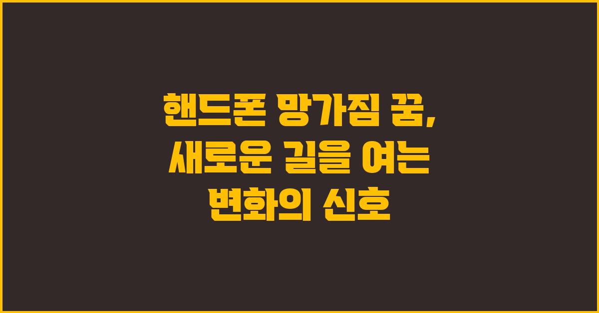 저의 개인적인 경험을 바탕으로 말씀드리면, 한 번은 꿈속에서 제 핸드폰이 갑자기 깨져버린 적이 있습니다. 순간적으로 놀람과 공포가 느껴졌지만, 저의 감정은 급속도로 긍정적으로 변화했습니다. 그 꿈은 내가 오랫동안 해오던 일들이 알맹이 없이 흐르고 있다는 것을 깨닫게 해주었던 여정이었죠. 마치 핸드폰을 고쳐 나가듯, 내 삶의 방향성을 다시 잡고 싶다는 생각이 들었습니다.