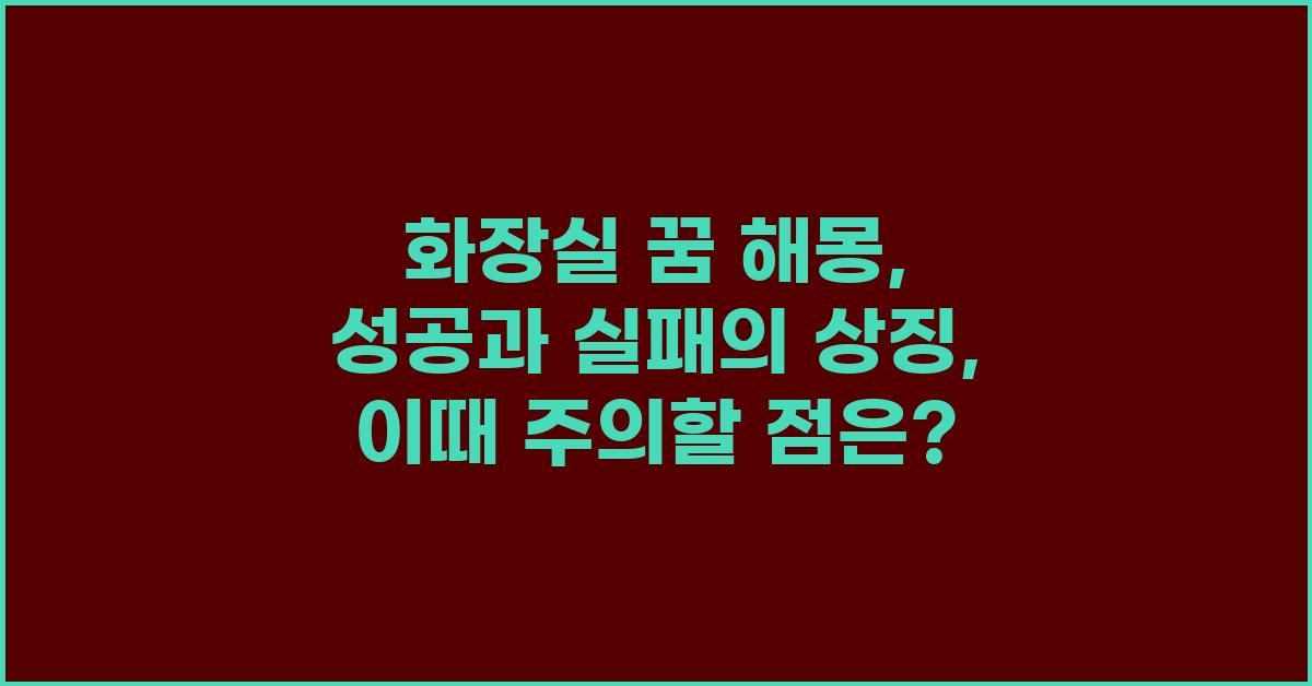 꿈의 해몽은 단순히 의미를 찾는 것이 아니라, 그 꿈이 가진 개인적인 메시지를 이해하는 데 중요합니다. 화장실 꿈 해몽: 성공과 실패의 상징 | 꿈해몽 꿈풀이 꿈해석 꿈의미를 통해 자신의 현재 상태를 점검해보며, 앞으로의 과제를 생각해보는 시간을 가져보시는 건 어떨까요? 이 글을 통해 조금이나마 도움이 되셨길 바랍니다!