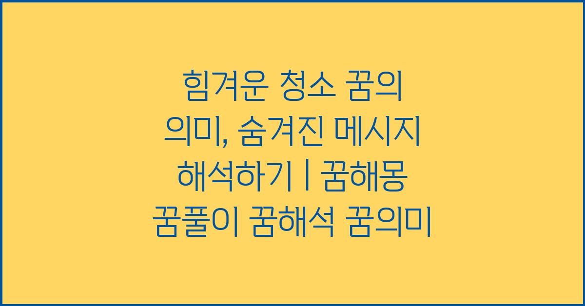 💭 꿈 속의 힘겨운 청소, 무엇을 암시하는 걸까?