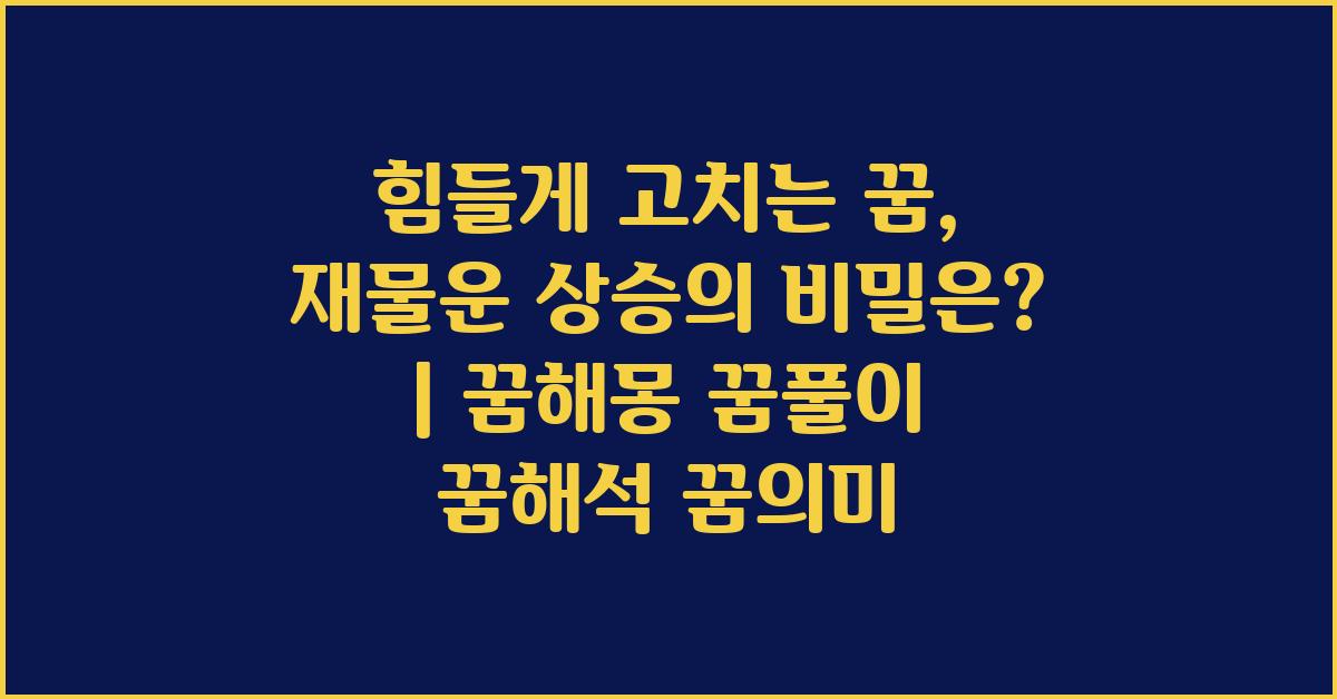 힘들게 고치는 꿈, 재물운과의 관계는? | 꿈해몽 꿈풀이 꿈해석 꿈의미를 통해 우리는 보다 깊은 이해를 얻을 수 있습니다. 꿈을 해석하는 과정은 단순히 흥미로운 이야기가 아닙니다. 현시점에서 여러분의 삶을 점검하고, 앞으로 나아갈 길을 깨닫는 데 중요한 역할을 합니다. 꿈 해몽은 우리가 어떤 결정을 내릴지에 대한 통찰력을 제공합니다.